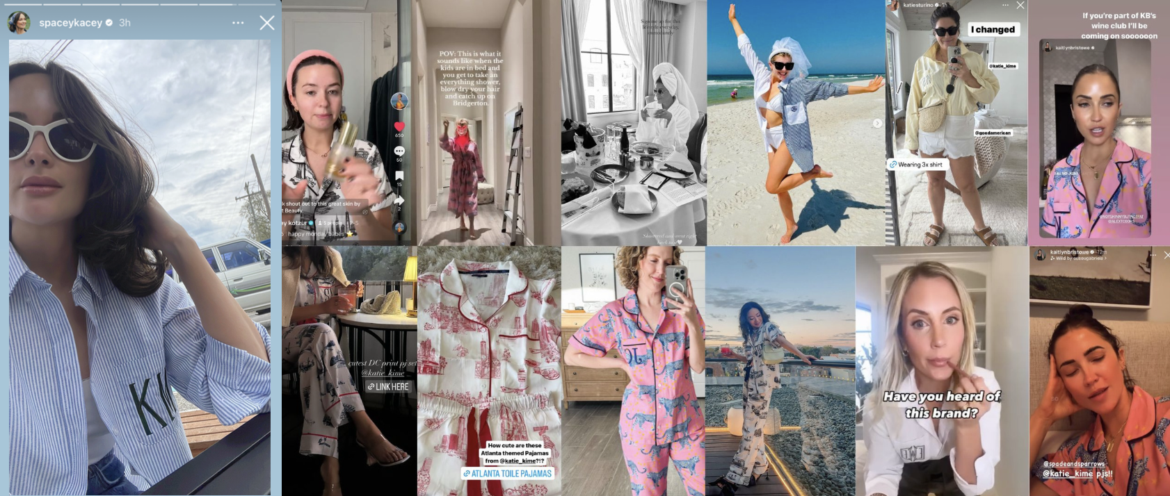 This TikTok was a trend of people showing a screenshot of a tweet saying "Define you HAD to be there to experience it" following with a fashion trend from the early 2000's. This print of banana leaves was one of the first items that put Katie Kime on the map, and felt it was a good way to show our audience that Katie Kime can be "in on the joke" so to speak.